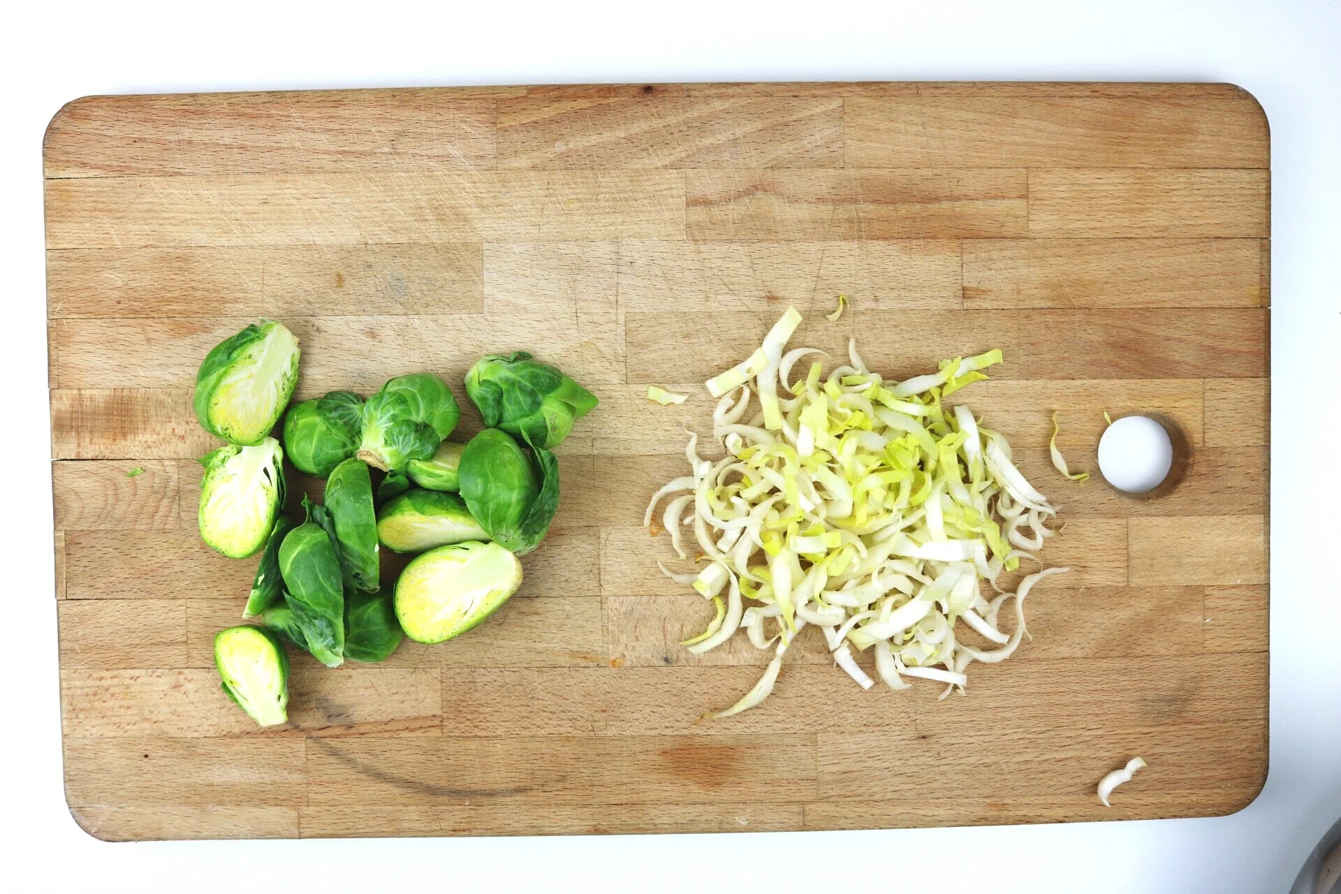 ingredients: kale, endive, brussels sprouts, chickpeas