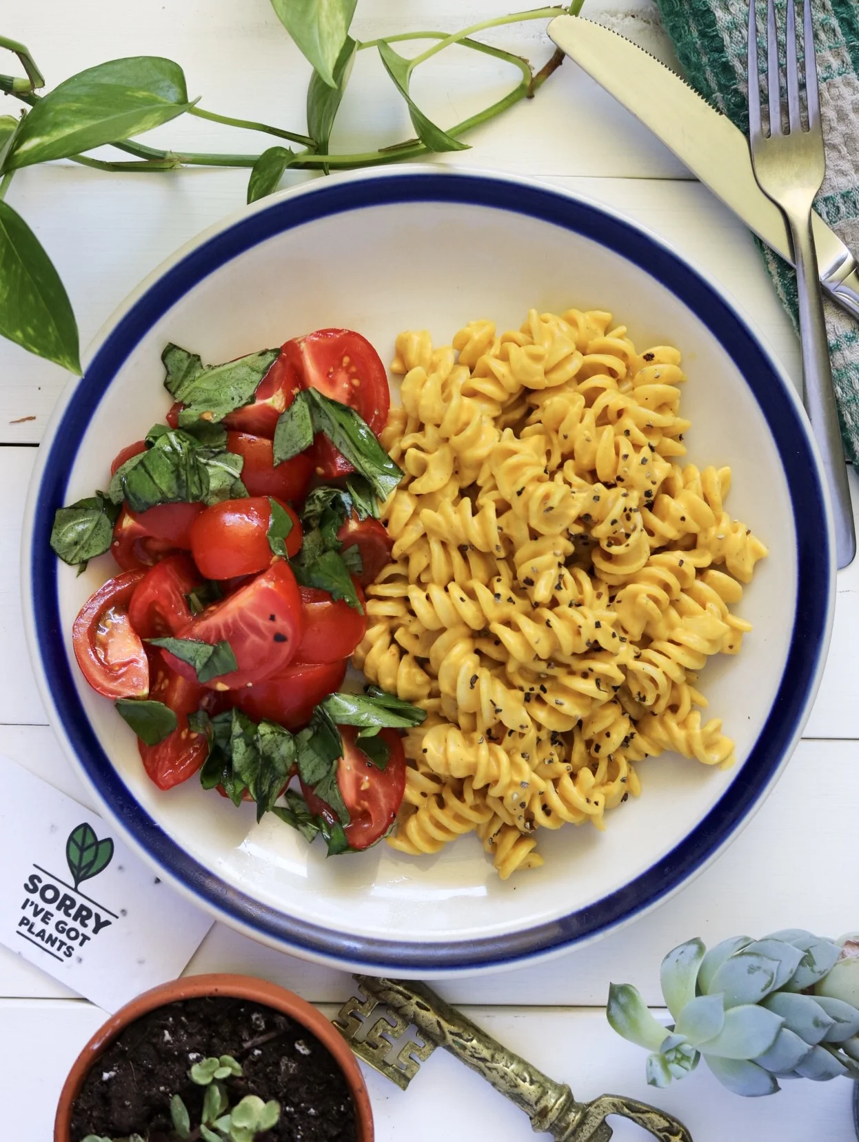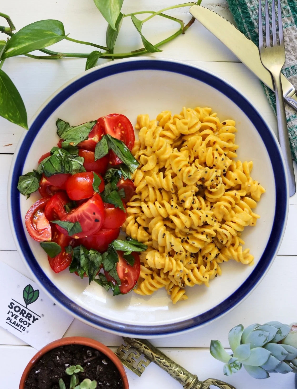 carrot & miso cheez pasta + tomato basil salad