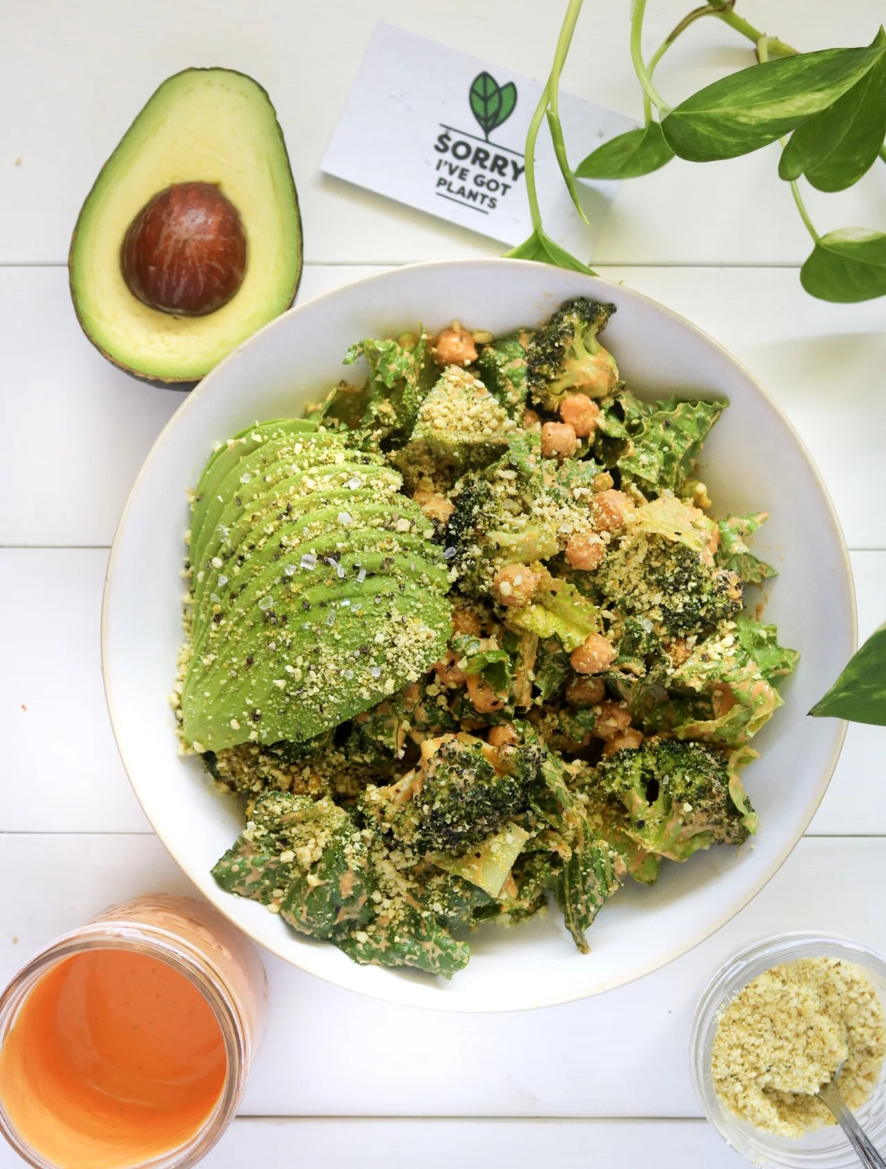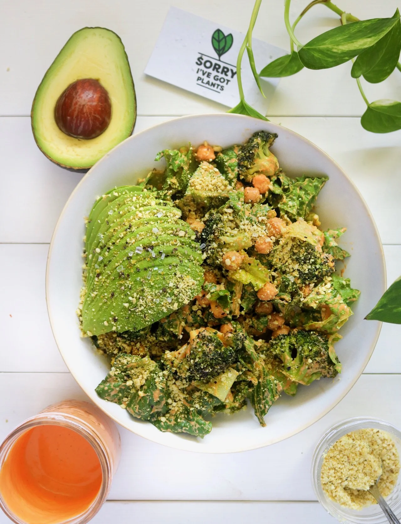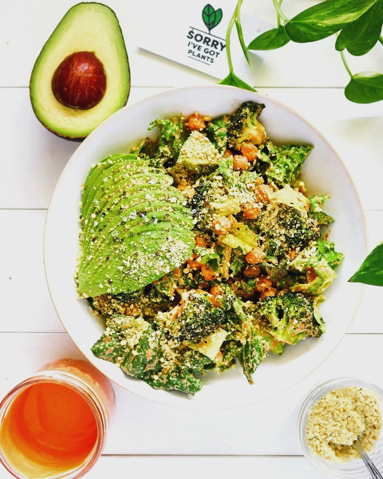 red pepper caesar + broccoli, chickpeas & avocado