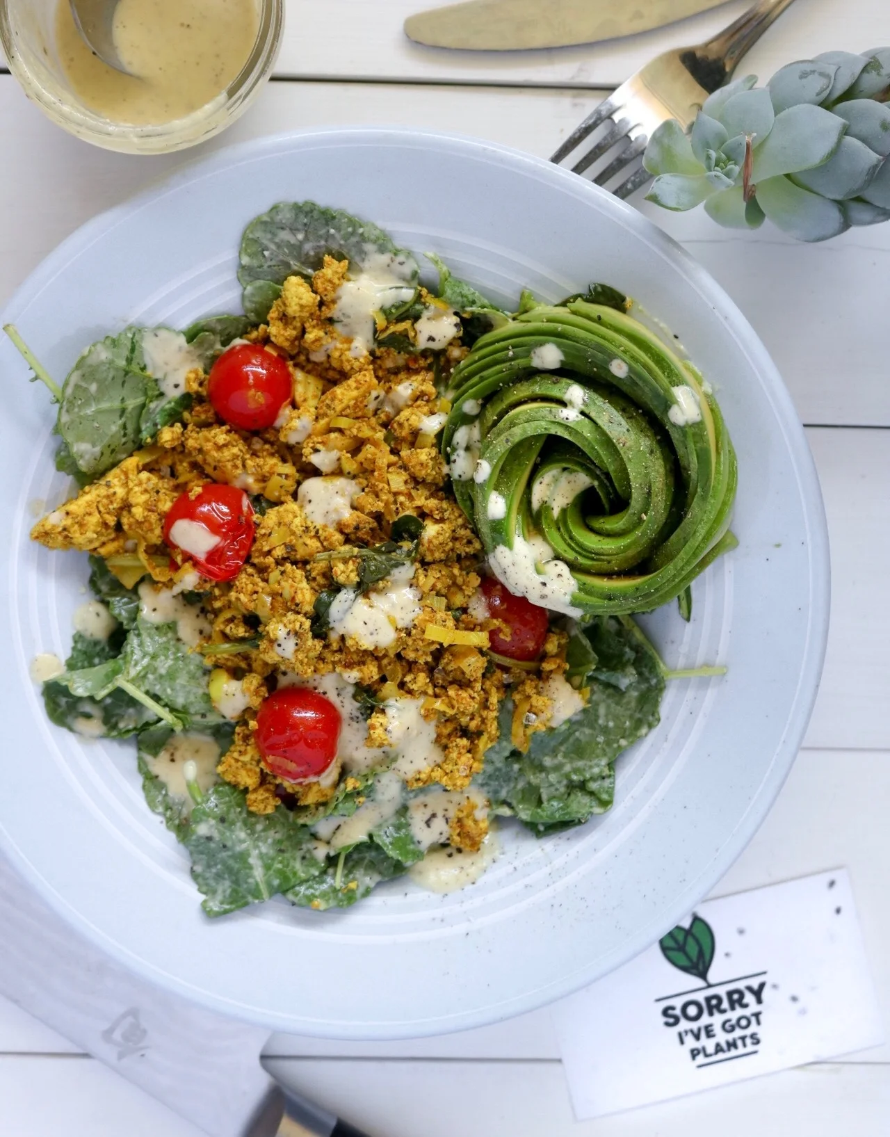tofu scramble + baby kale & avocado salad