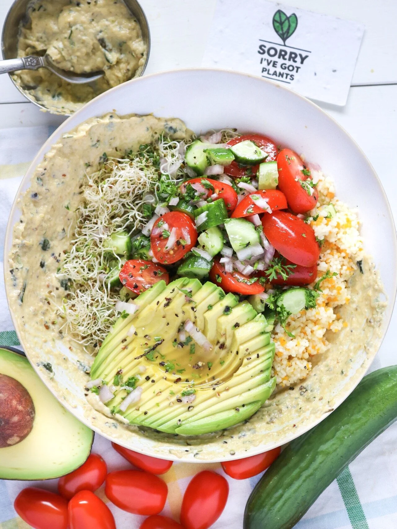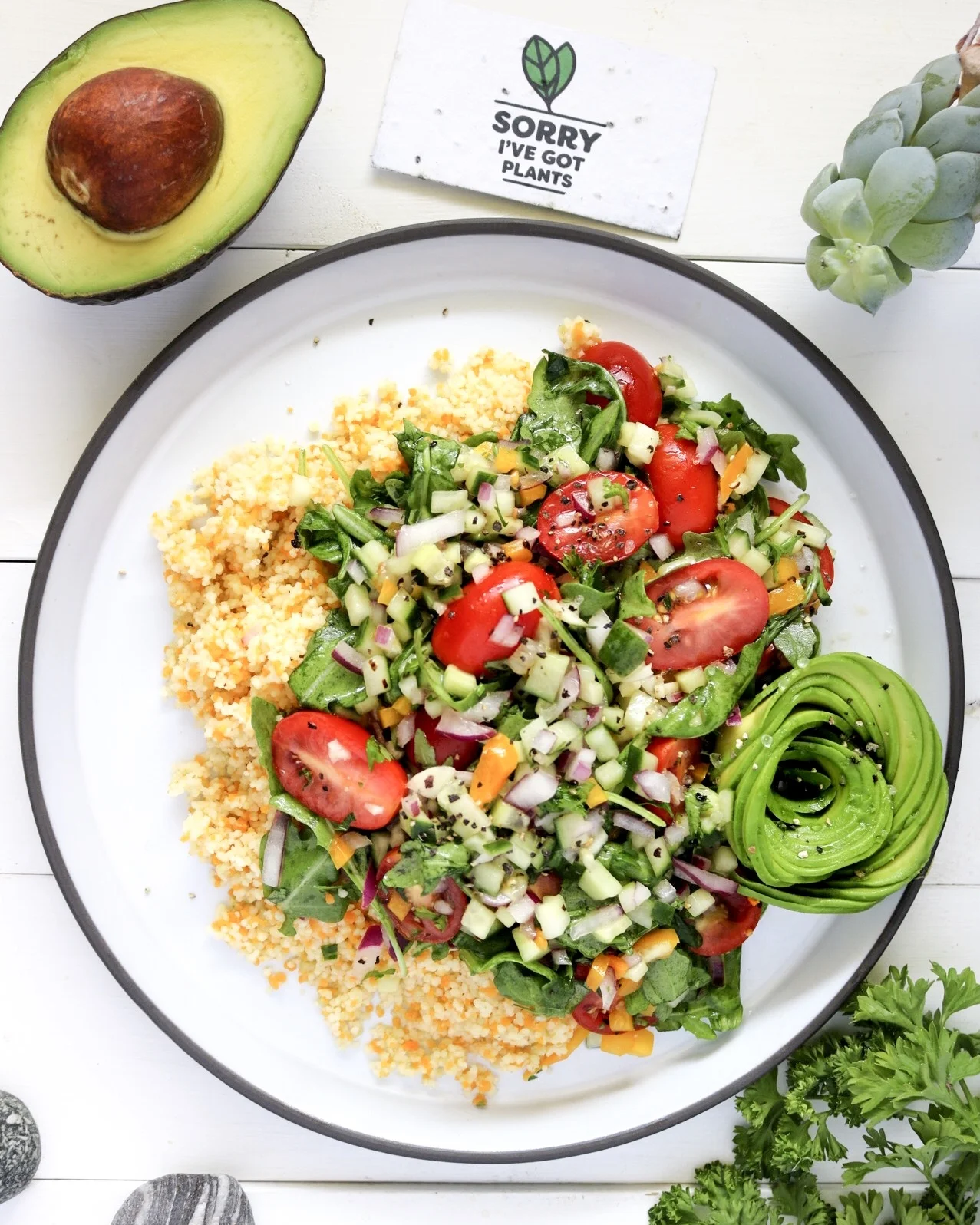 israeli salad + avocado & tri coloured cous cous