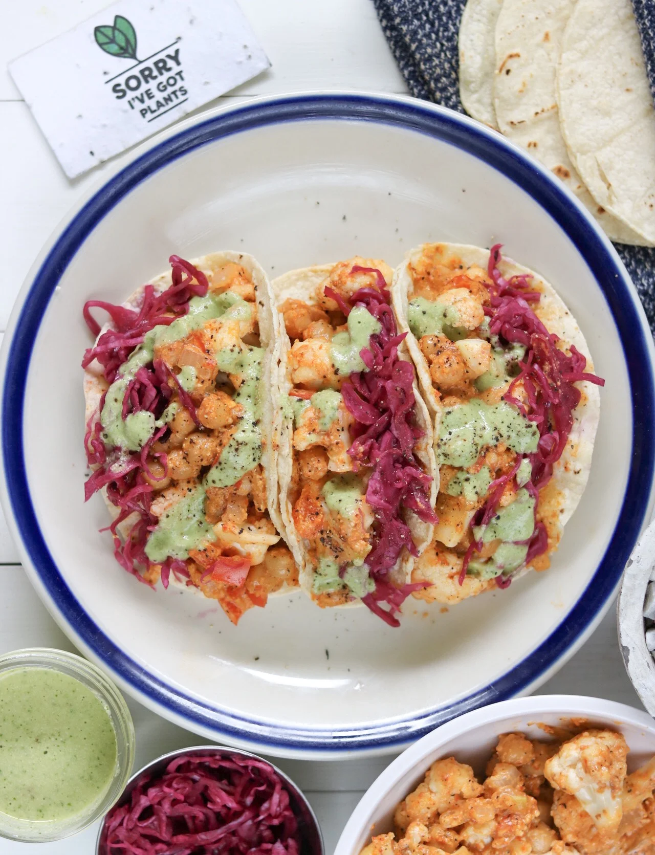 cauliflower & chickpea romesco tacos