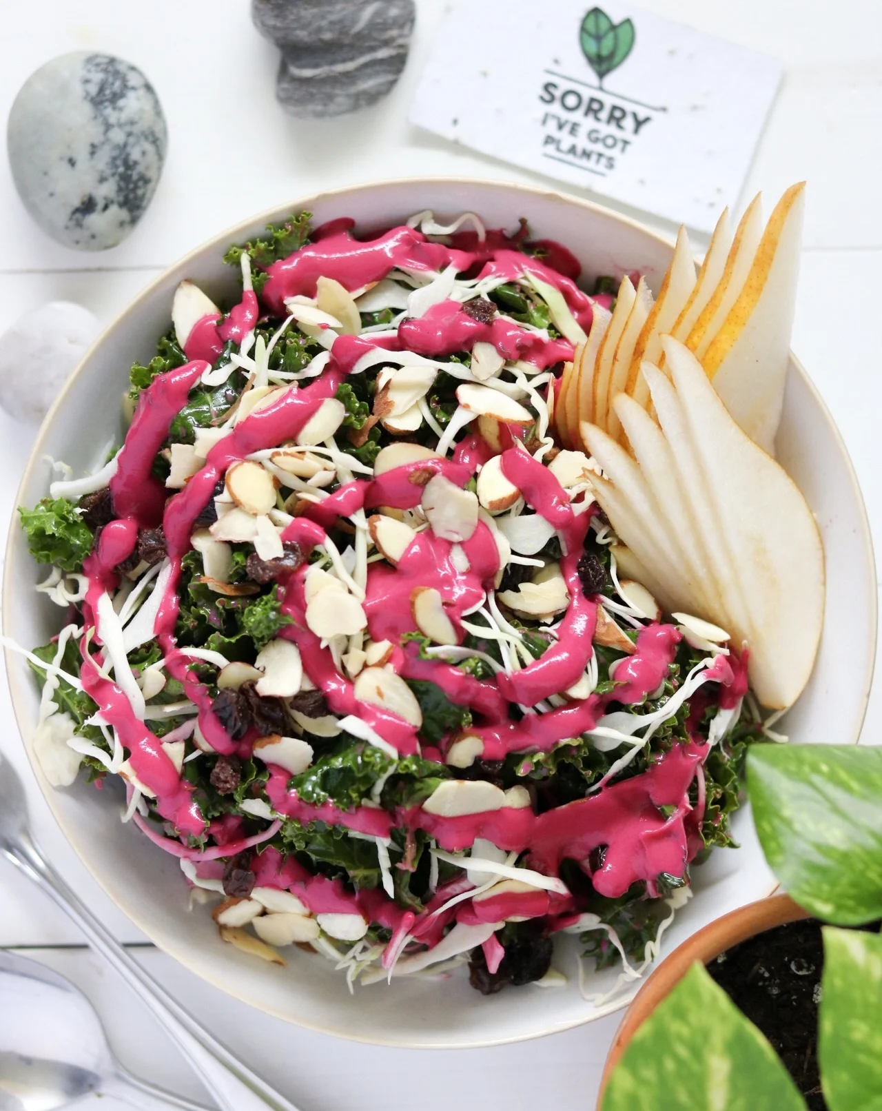 kale winter salad + beet tahini vinaigrette