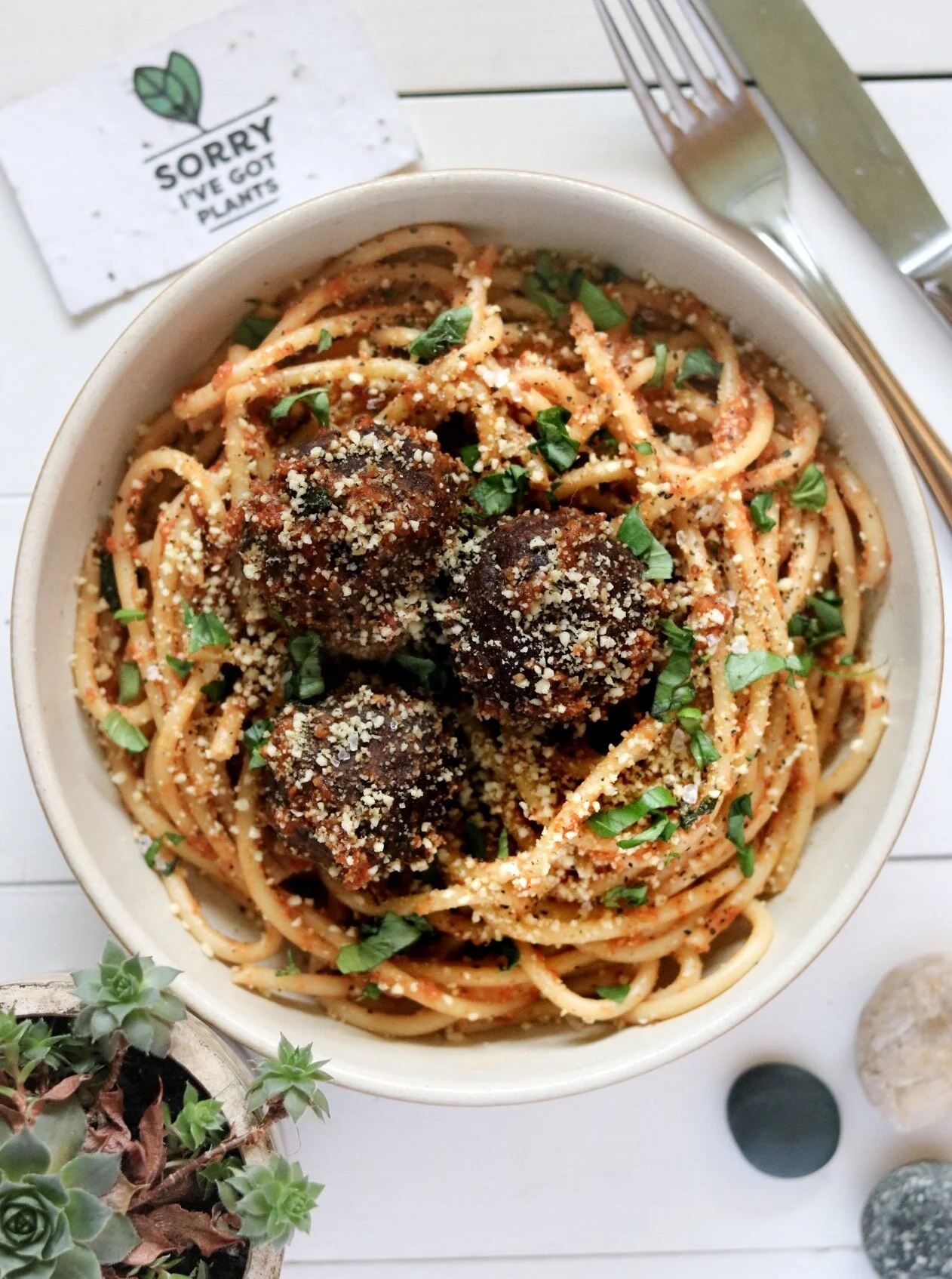 bucatini & black bean meatballs