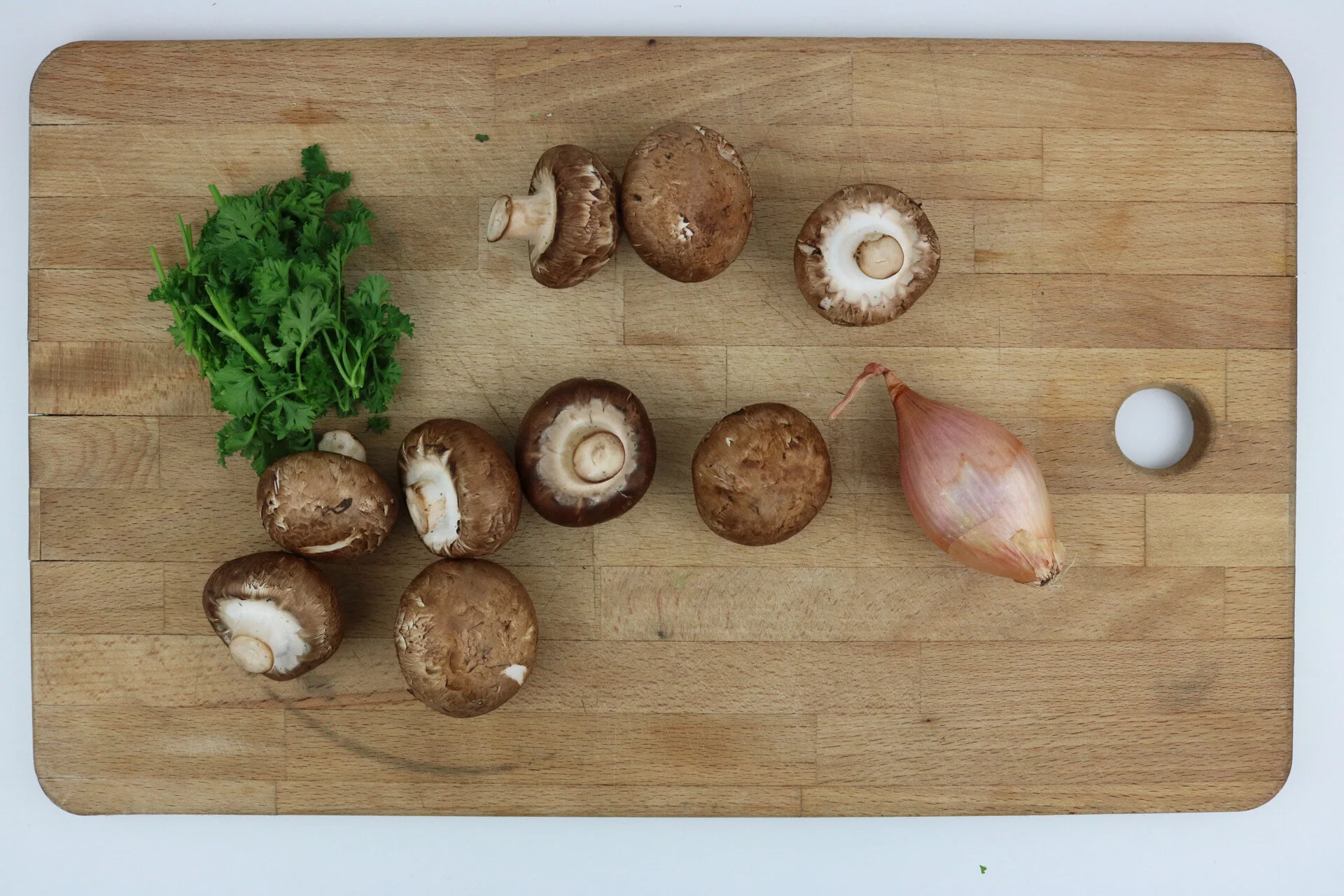 Bring a large pan with a splash of oil up to medium-high heat. Add diced shallot and cook for 2 mins, until they start to brown. Then, add in your mushrooms and cook for another 5 mins.