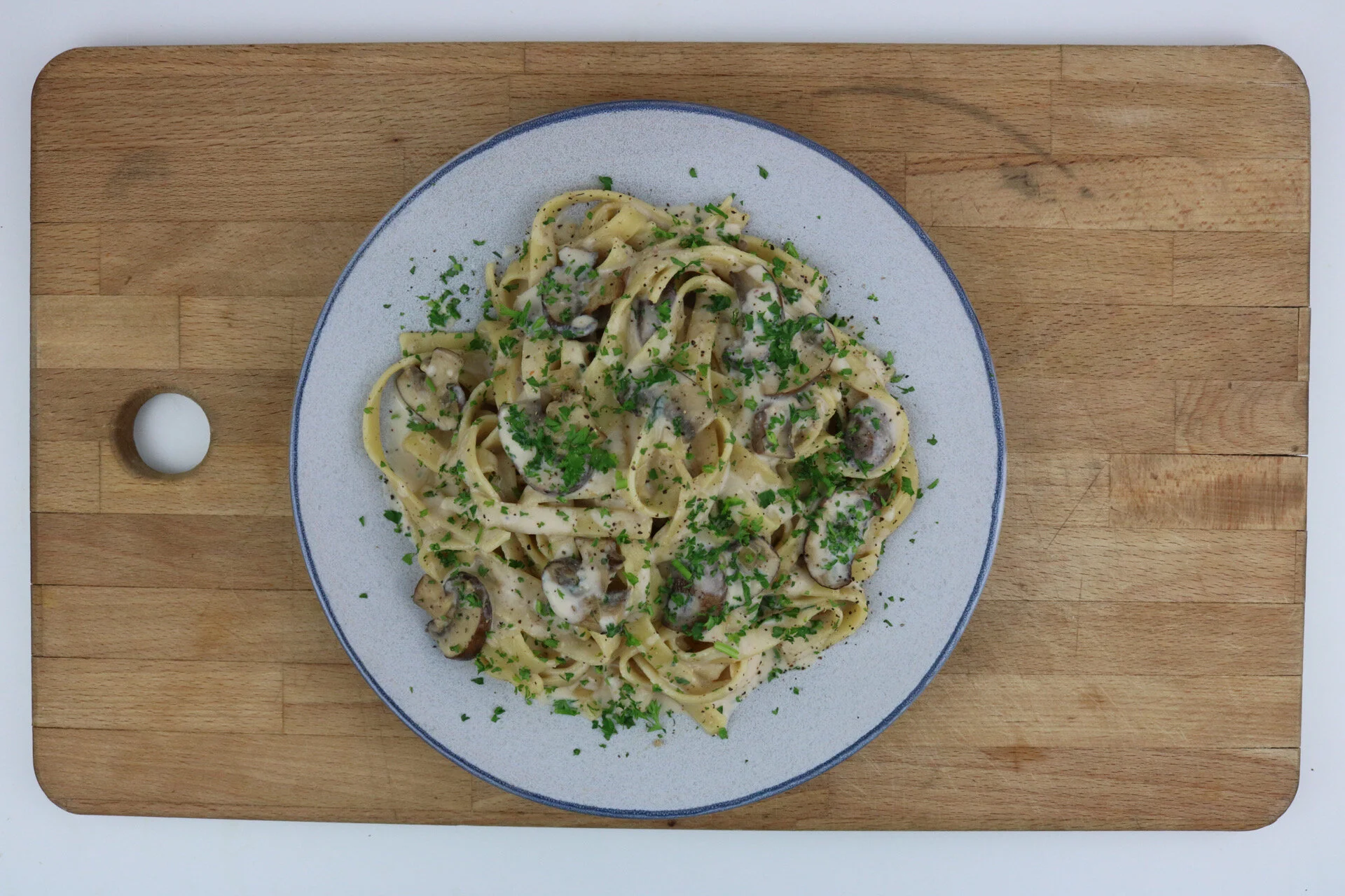 Plate your pasta, and garnish your garlic sauce + parsley. Enjoy!