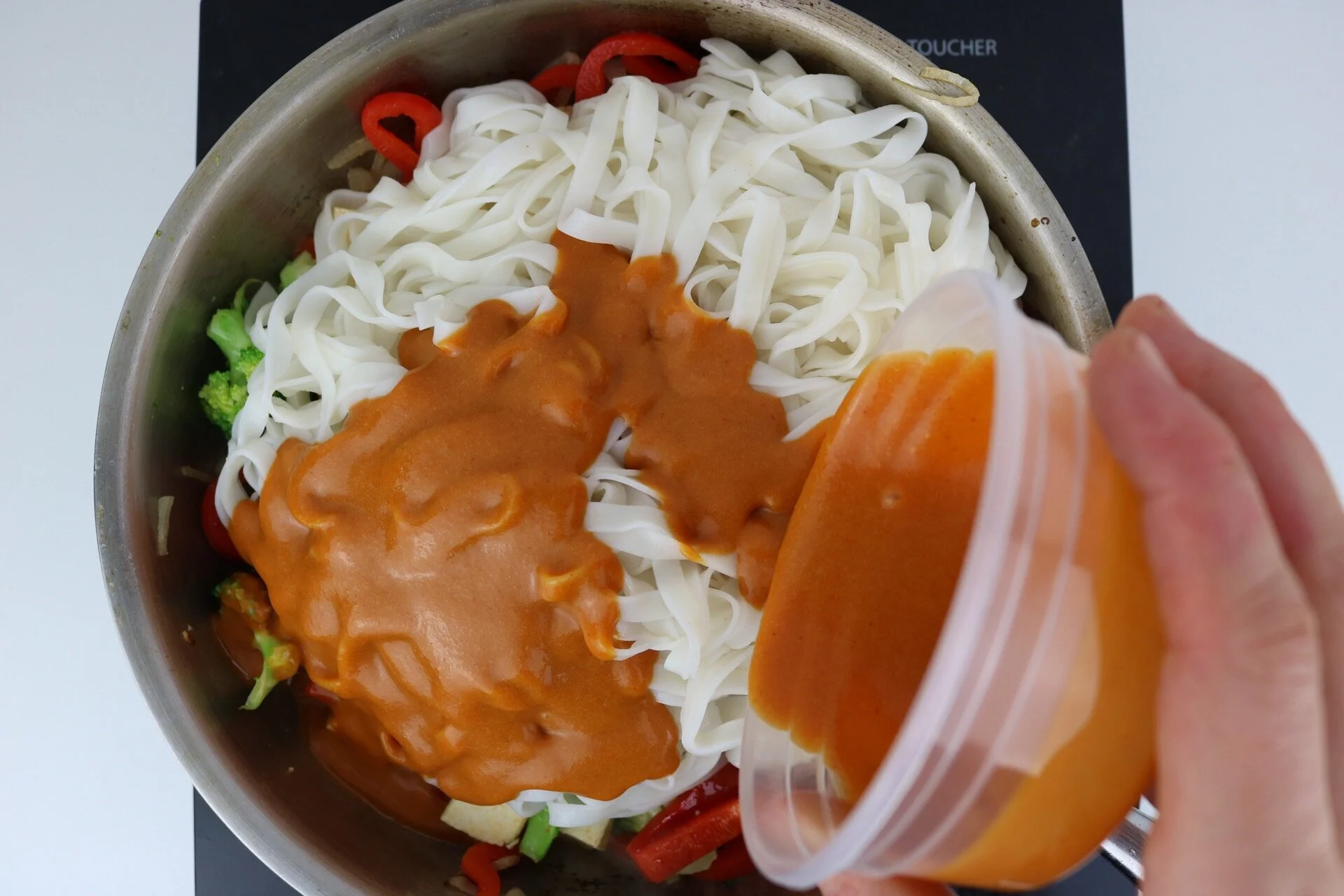 sauce: coconut milk, tamari, brown sugar, tamarind paste, red curry