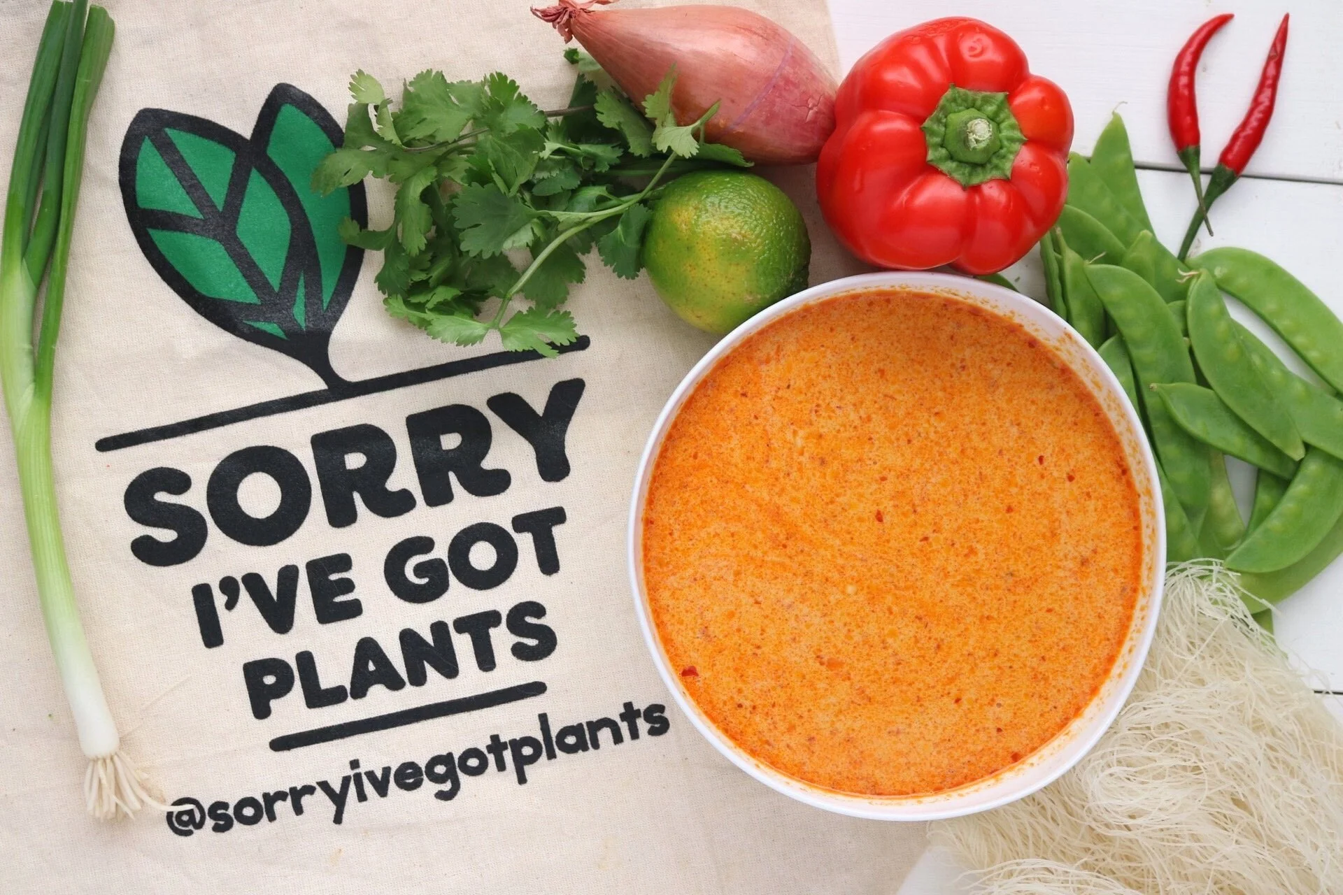 broth: coconut oil, ginger, garlic, red curry paste, coconut milk, soy, lime, maple