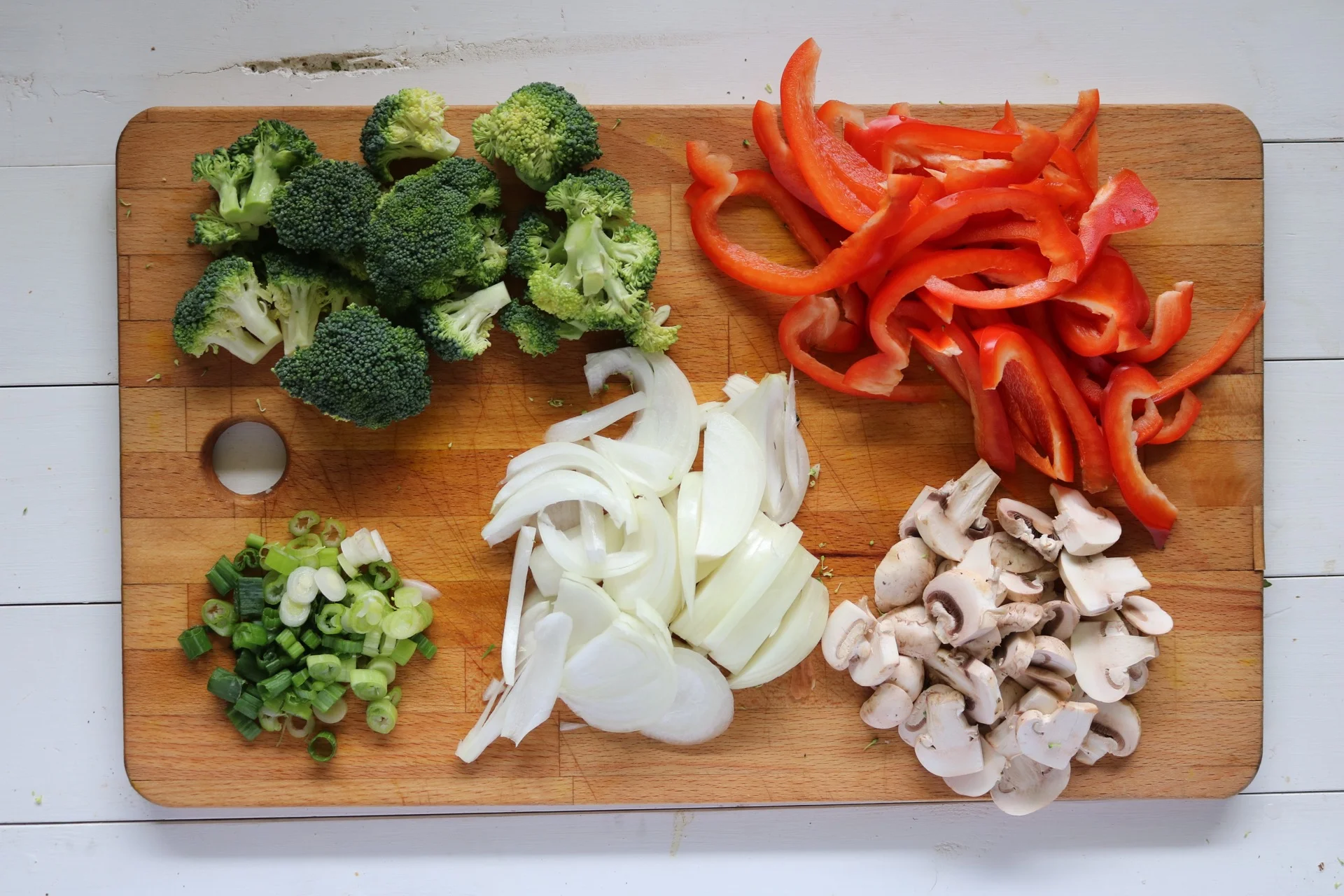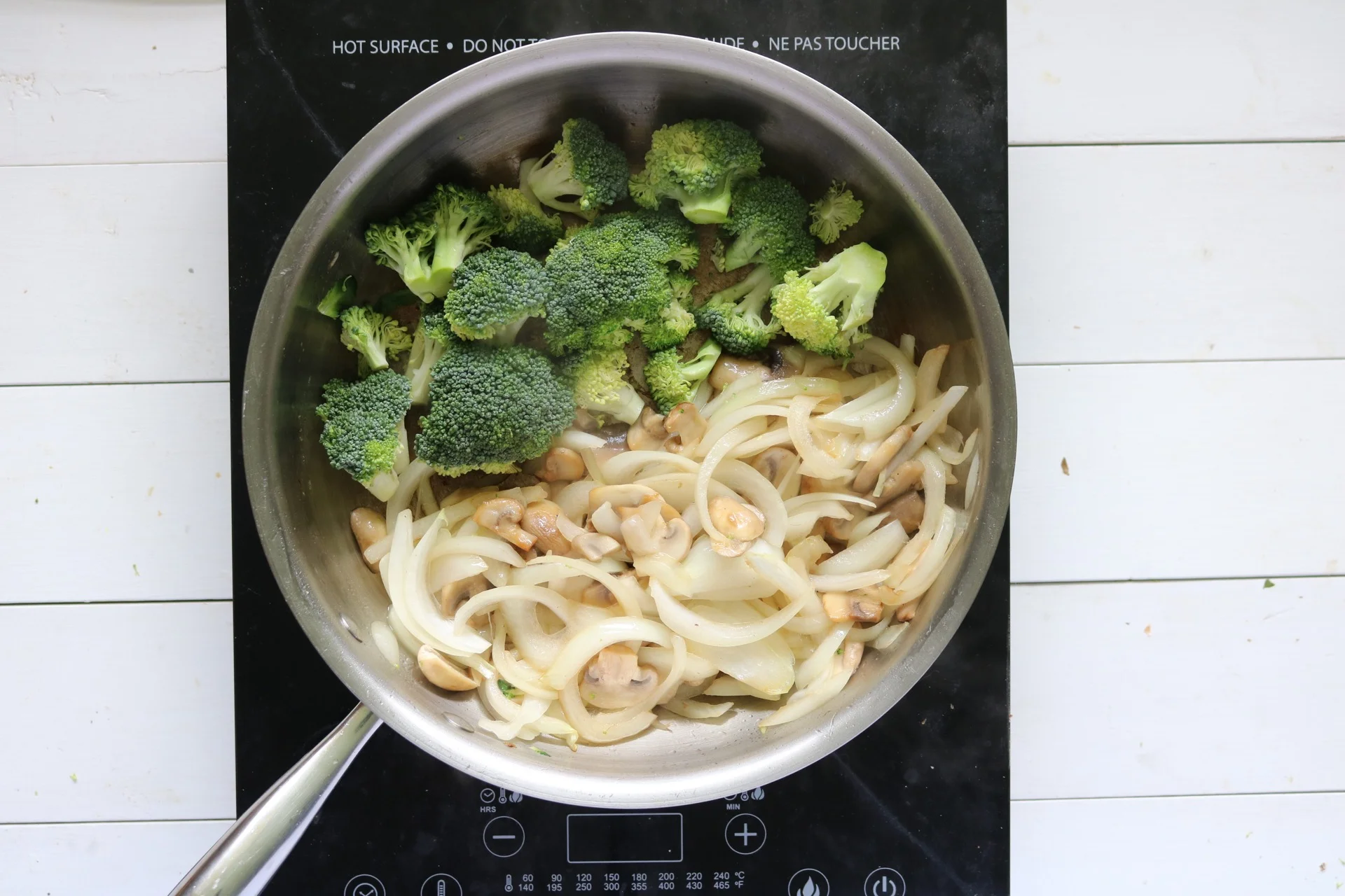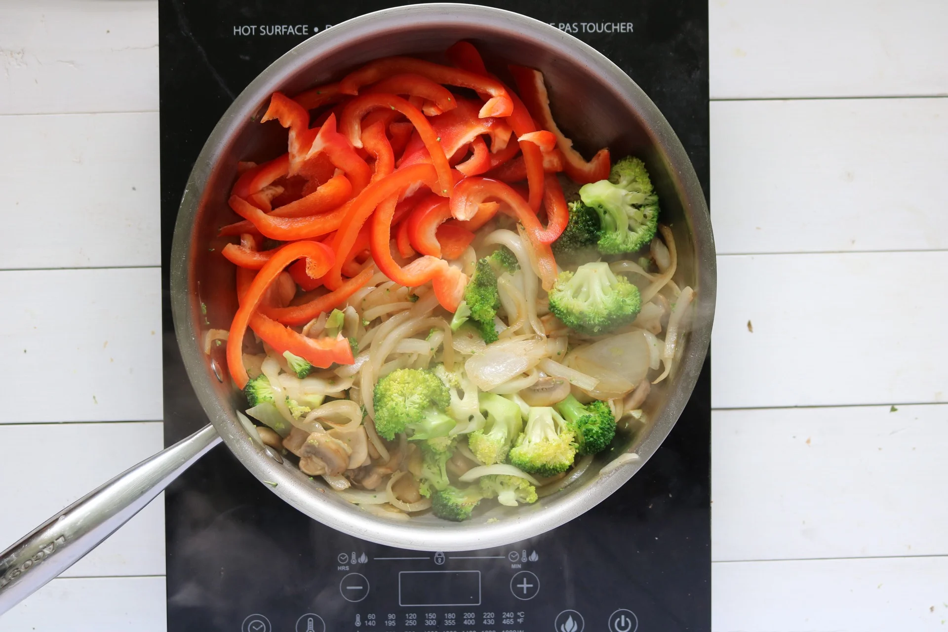 Ingredients: onion, broccoli, red pepper, green onion, onion, udon noodles, mushroom