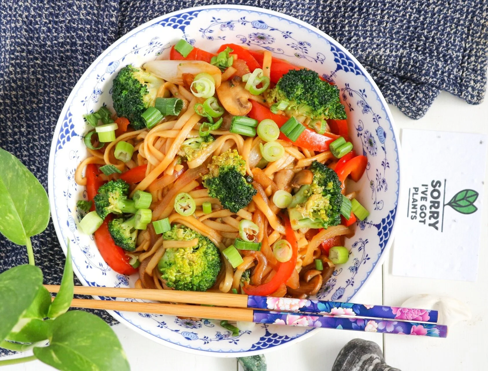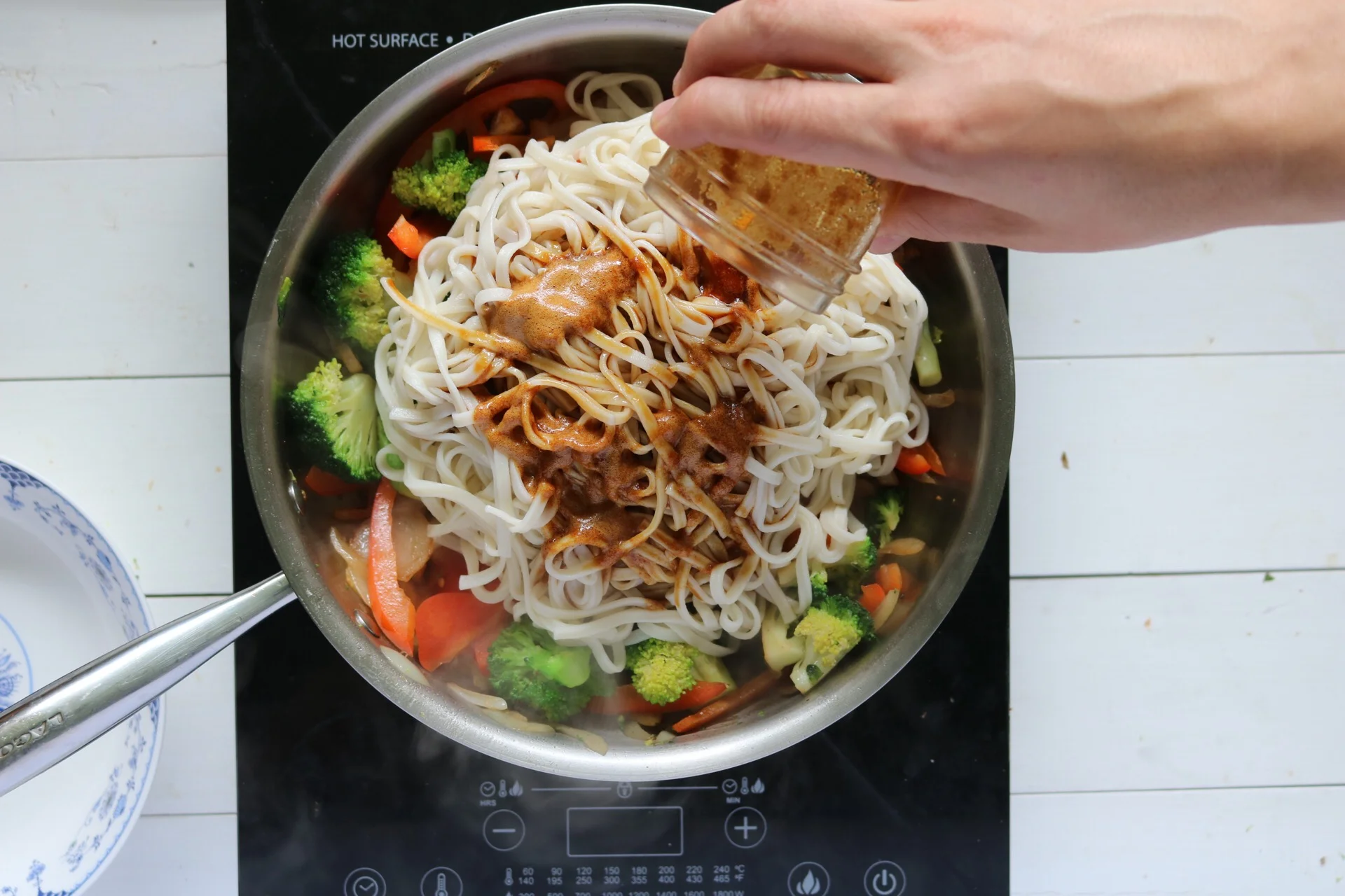 Bring a large pan with 2 tbsp of oil up to medium- high temperature. Once hot add in your onion and mushrooms and cook for ~5 min until the veggies start to brown. Next add in your broccoli & cook for another ~5 minutes. Add in your red pepper and let it cook for ~5 minutes again. Everything should be soft and cooked through. Last step is to add in your noodles and your sauce. This should take , you guessed it, ~5 minutes again. Be sure to keep stirring to ensure that everything is evenly coated and the sauce has begun to thicken so it is sticking to the noodles & vegetables.